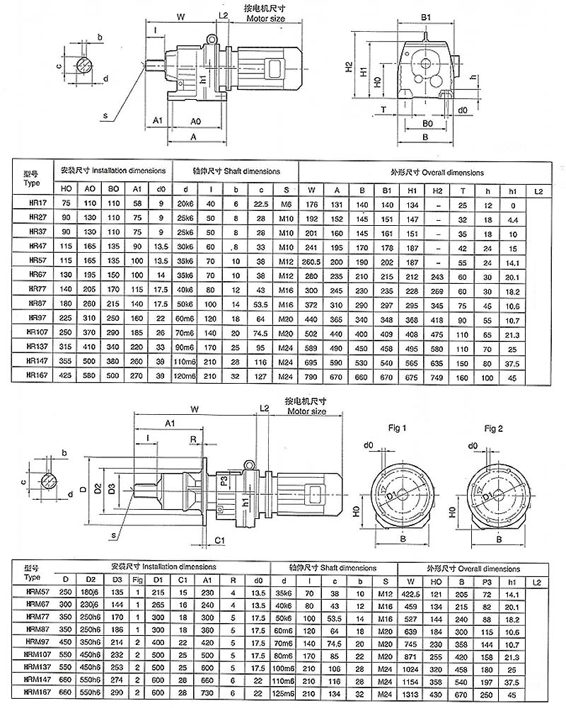| R…F:底腳法蘭安裝 | RM: 法蘭安裝帶加長軸承箱 |